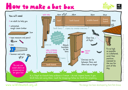 Make the box from rough sawn timber to give the bats something to cling to. It is also vital to check that the wood is untreated as many wood preservatives can kill bats.