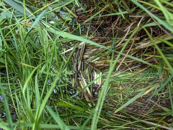 Our Reserves Intern, Ella Broom, saw these feeding signs of water vole while out surveying. Water voles leave piles of vegetation in larders, and also create little latrines, so although they are not always easy to spot themselves, the signs they leave behind are.
