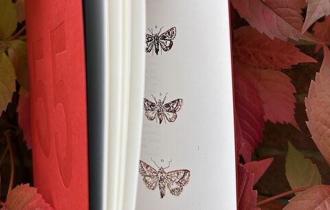 Eliza has created a special edition chapbook (a paperbound collection of poetry or stories) focused on the UK’s native moth species. Titled Red Fifty Five, the book draws attention to the 55 species of moths in the UK which are listed as Critically Endangered, Endangered, and Vulnerable in the Red Data Book.